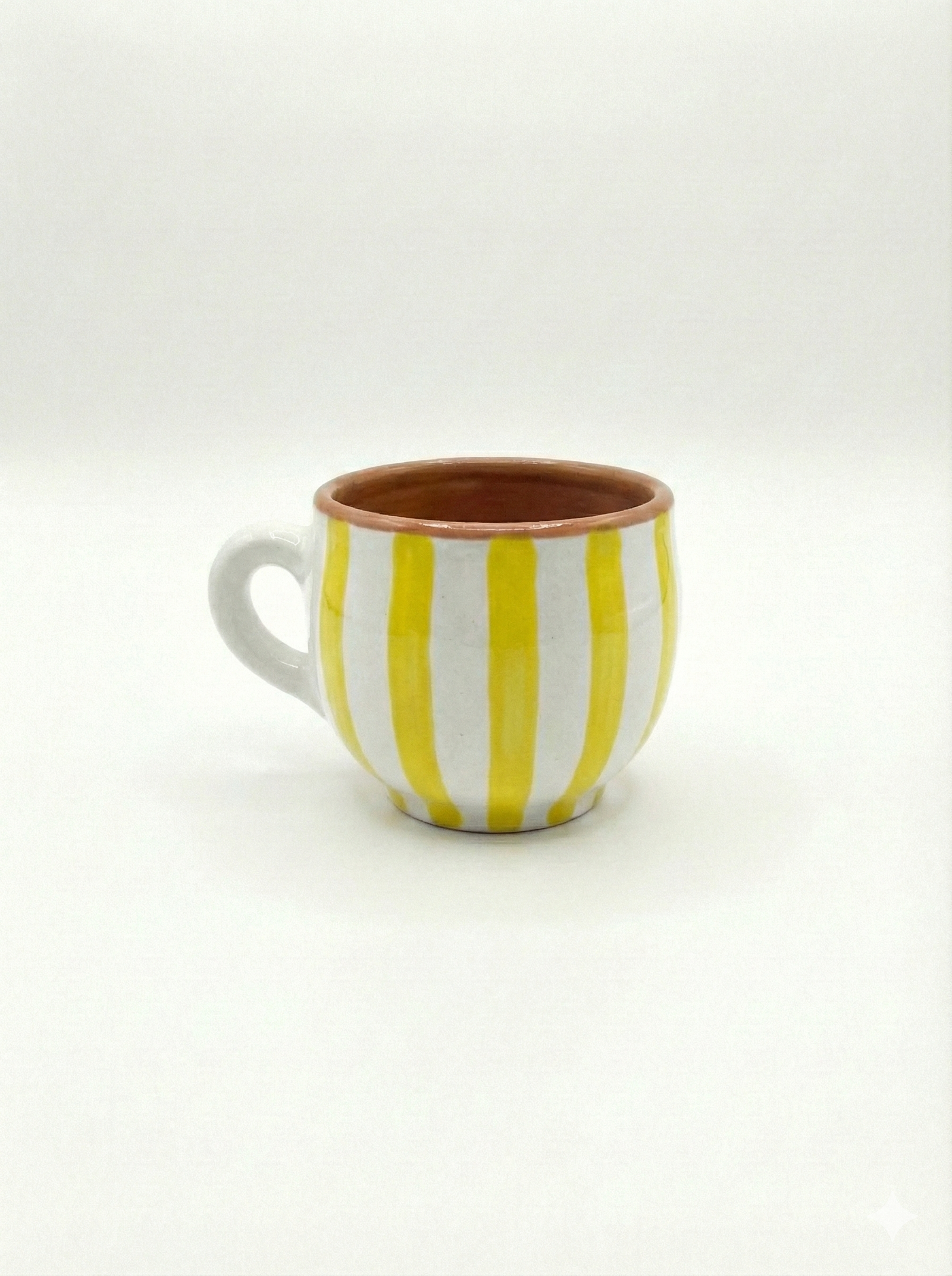 Add a pop of color to your morning routine with this charming artisan mug. Featuring a timeless vertical stripe design and a rustic finish, it’s the perfect vessel for your favorite coffee or tea. Available in a variety of vibrant colors to match your style.